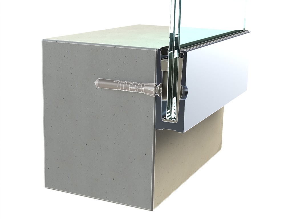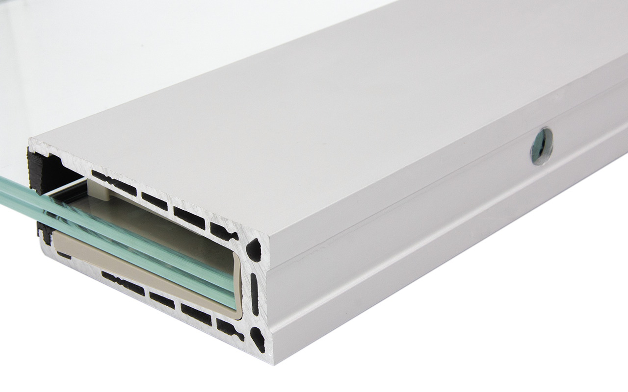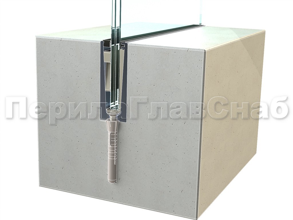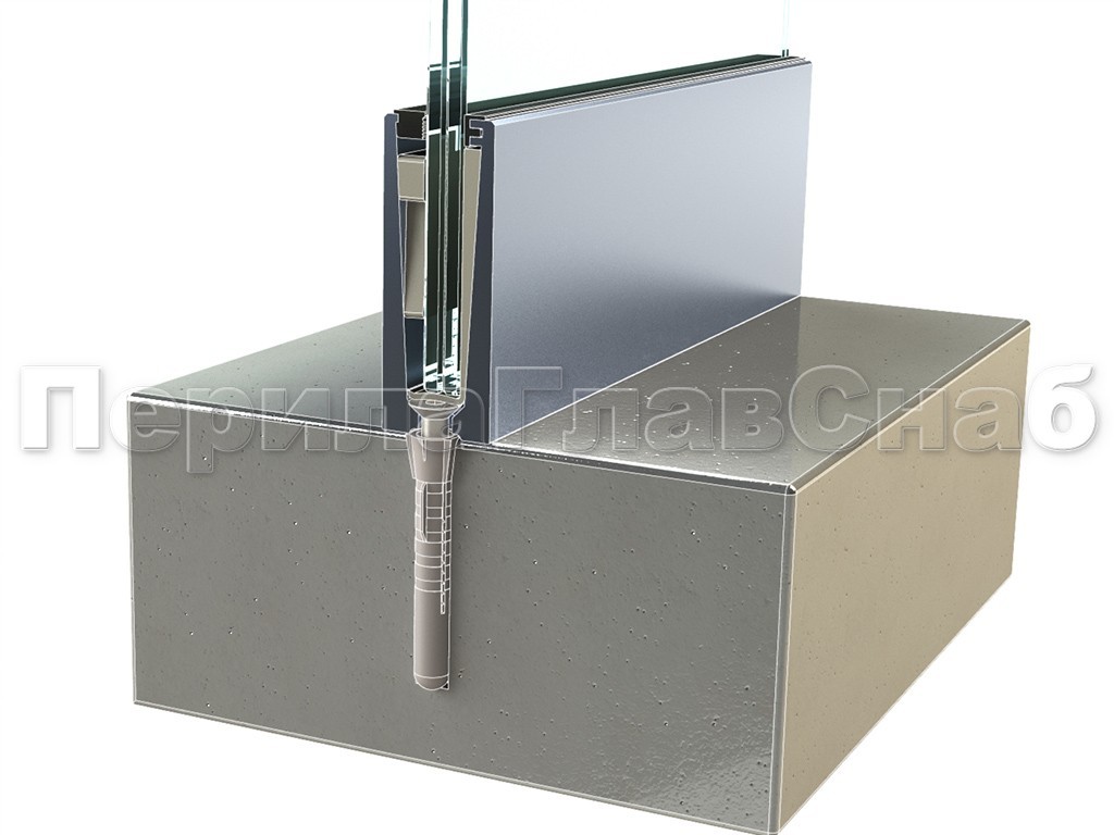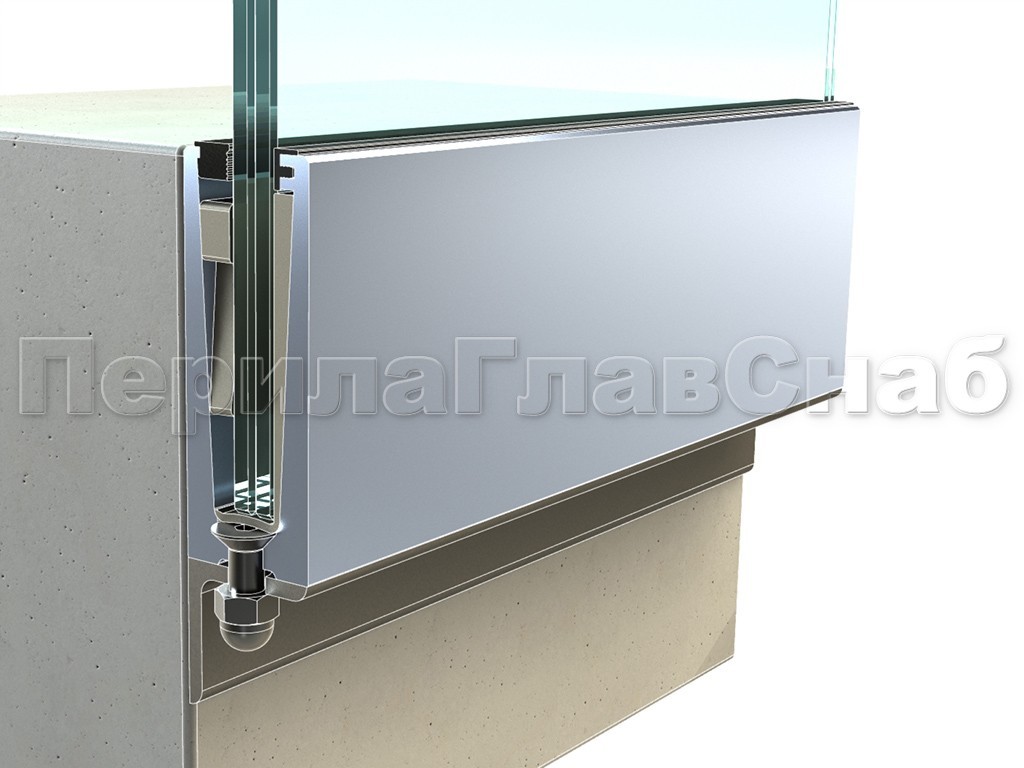 Профиль крепится на горизонтальную поверхность через отверстия просверленные в нижней части профиля. Также профиль может быть смонтирован к боковой поверхности. Стекло вставляется сверху, зажимается распорными клиньями через уплотнительные резиновые прокладки. монтажный паз профиля закрывается резиновой накладкой. Накладки под любую толщину стекла - от 10мм (5+5) до 16мм (8+8) входят в комплект поставки. Дополнительно можно приобрести декоративные накладки из полированной стали и торцевые заглушки.
