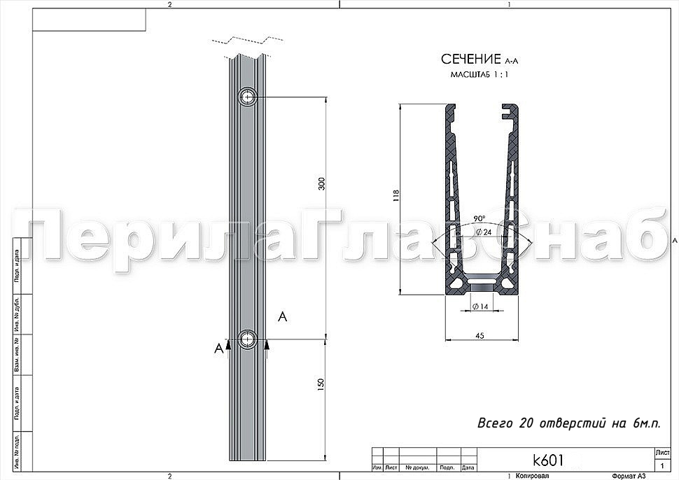 Профиль сверленый: от края 150 мм, следующие отверстия с шагом 300 мм. Длина алюминиевого профиля 6 метров. Элементы из резины не рекомендуется хранить на холоде. Профиль сертифицирован и имеет протокол испытаний!