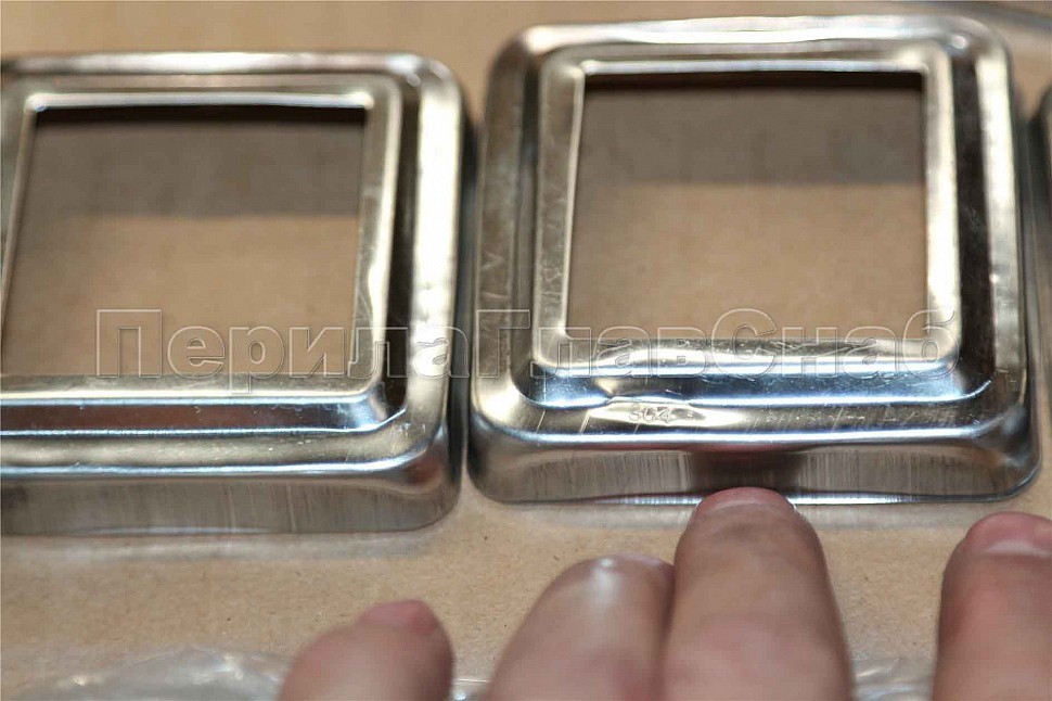 Низ стойки фигурный под трубу 50х50 мм, 83х83х0.5 мм, высота 17 мм, полированный (AISI 304) k375