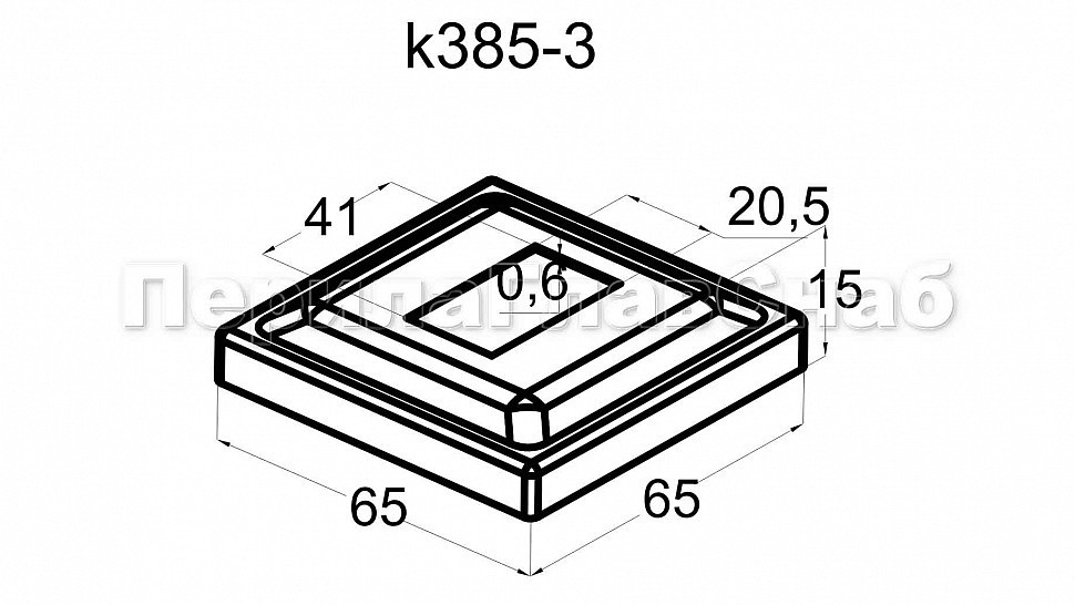 Низ стойки под трубу 40х20 мм, 66х66, высота 16 мм, S=0.6 мм