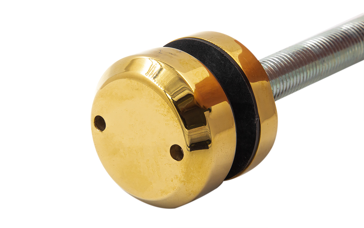 Стеклодержатель Ø50х10х18, шпилька М16х205 мм, для стекла 8-40 мм, AISI (201), с возможностью регулировки выноса до 65 мм, для торцевого крепления стекла, полированный, литой k277-3 купить в Екатеринбурге