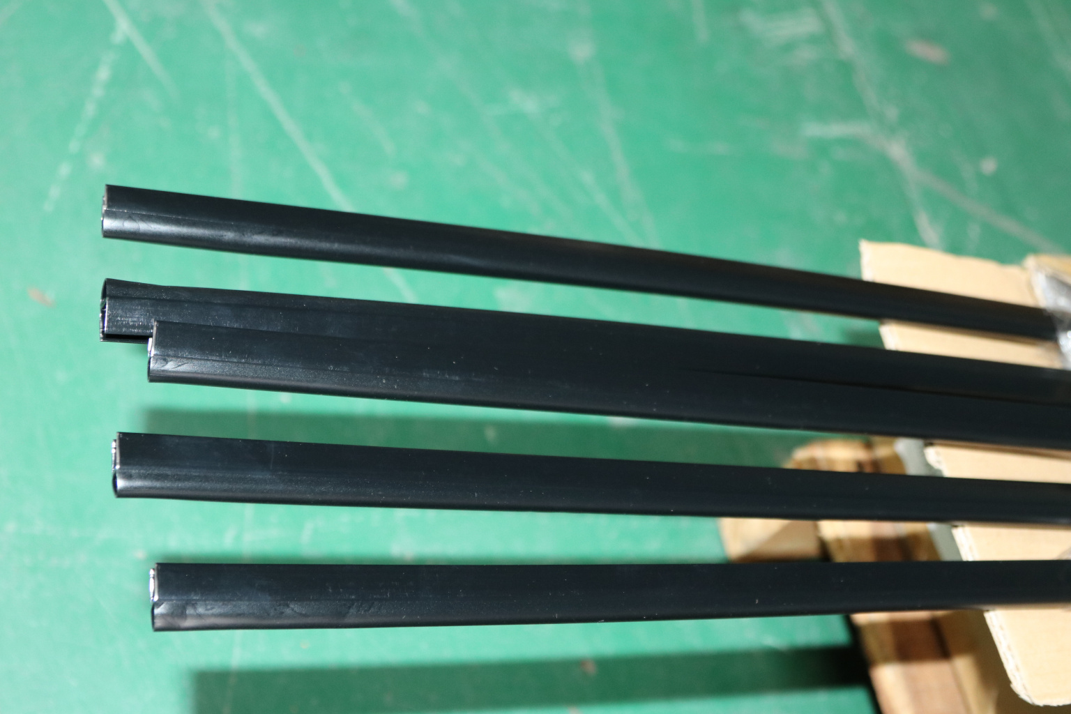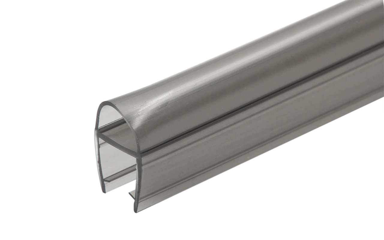 Уплотнитель имеет исполнение полупрозрачной черной поверхности, выполнен из материала ПВХ. Имеет A-образный профиль. Толщина одного типоразмера составляет 1,5 мм, длина – 2200 мм. За счет своих свойств (стойкость к щелочам, минеральным маслам и многим кислотам) прекрасно подходит для крепления стеклянного листа по всему периметру. Позволяет герметично соединять стеклянные панели с дверью, что гарантируют отсутствие течи в вертикальной части конструкции.