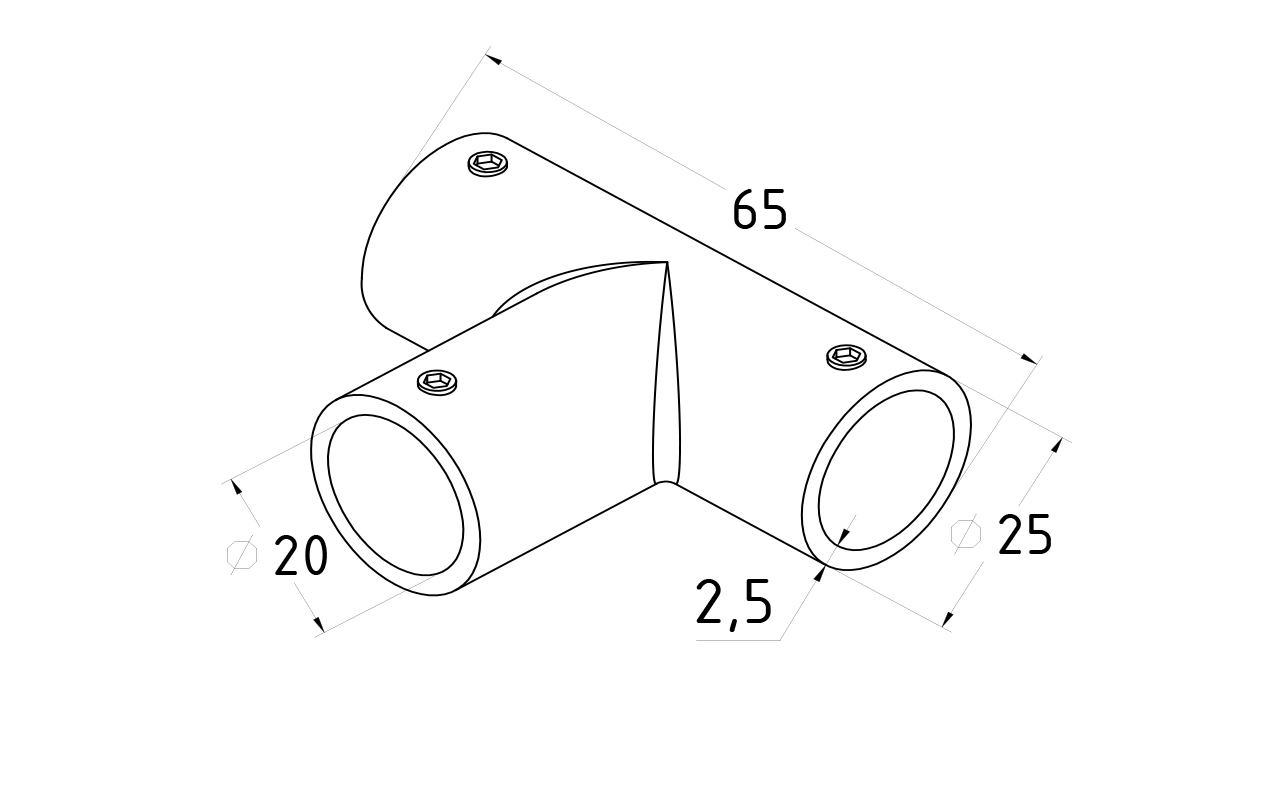Соединитель-тройник для трубы 19 мм, шлифованный