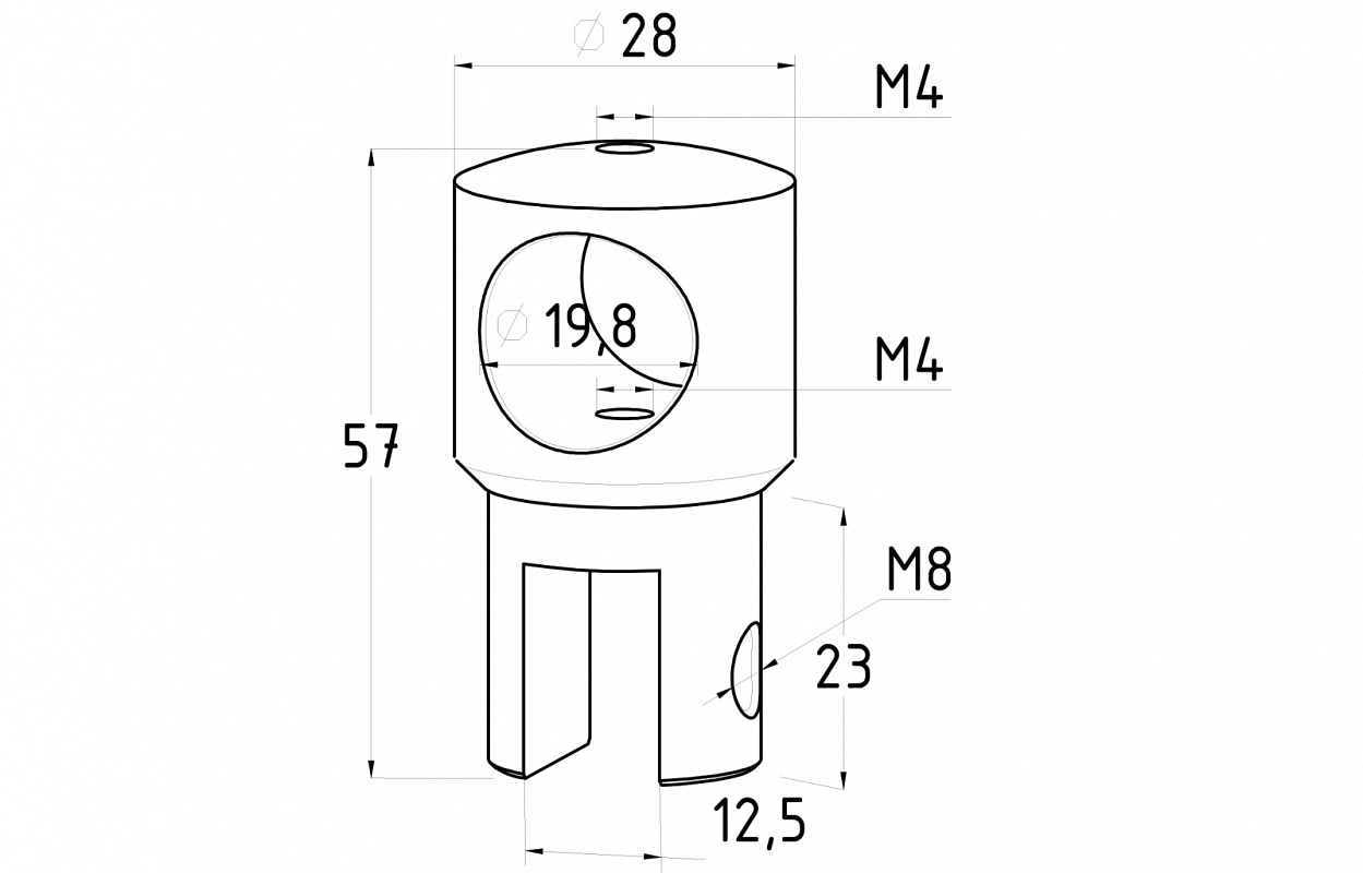 Крепежный элемент сквозной для трубы 19 мм, шлифованный t914 SSS