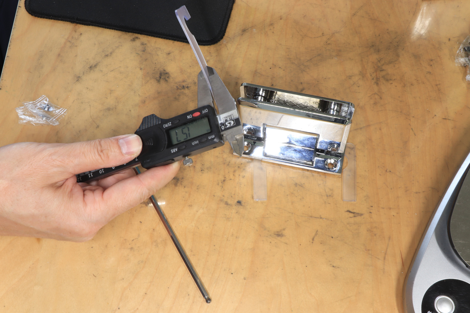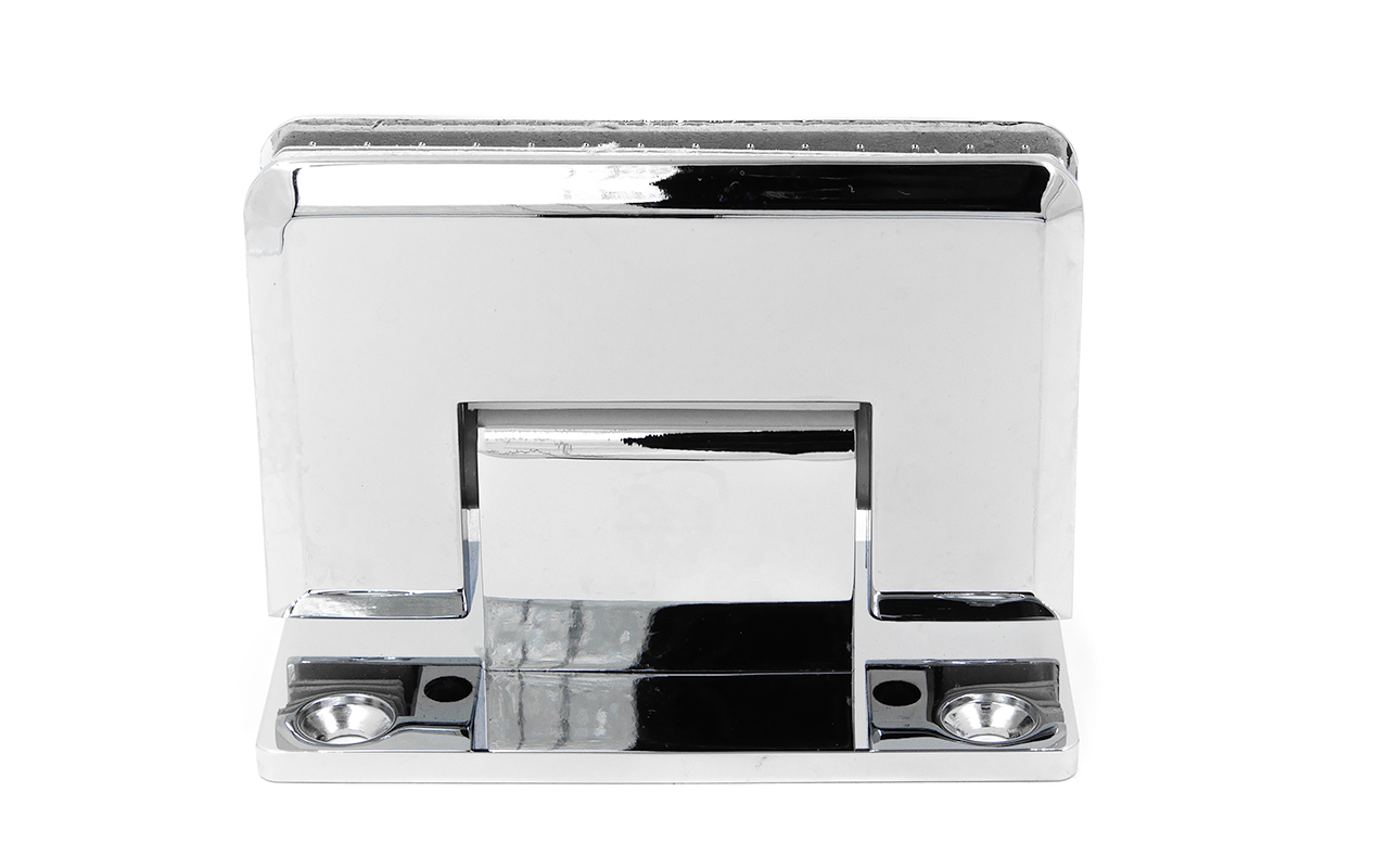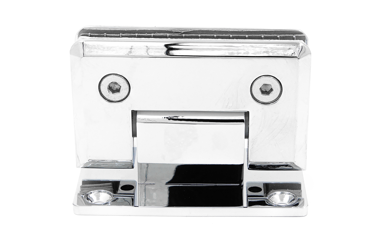 Петля из нержавеющей стали с полированной поверхностью из нержавеющей стали предназначена для стыковки между собой конструкционных элементов из стекла, толщина которых находится в диапазоне от 8 до 10 мм. Максимальный вес двери на 2 петли составляет 45 кг. В конструкции заложена система скрытого крепежа. Имеет функцию доводчика до закрытия от 25°. Максимальный угол разведения стыковочных элементов в плане составляет 90°. Крепление предусмотрено с двух сторон на 4 винта со шляпками заподлицо (по 2 винта на каждую сторону). Размер одной стороны петли составляет 90х55 мм.