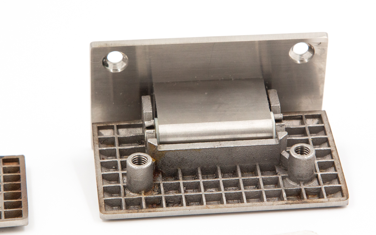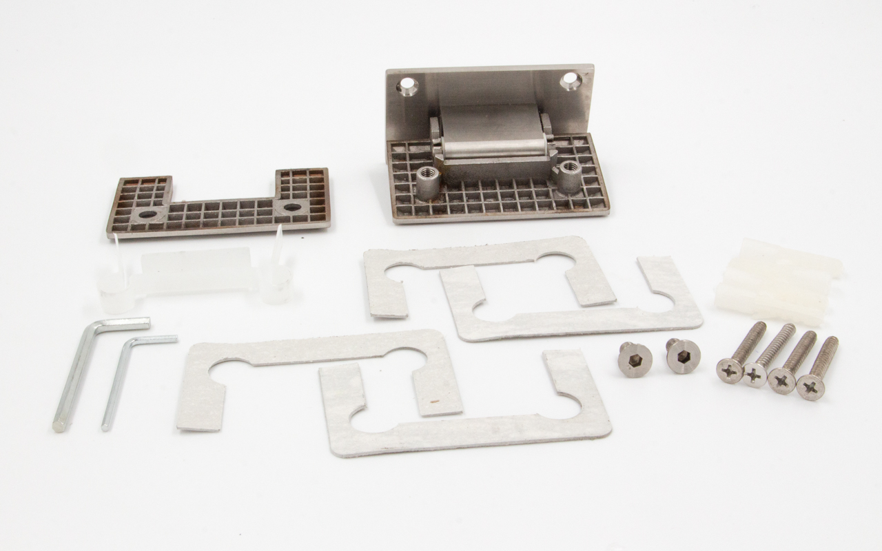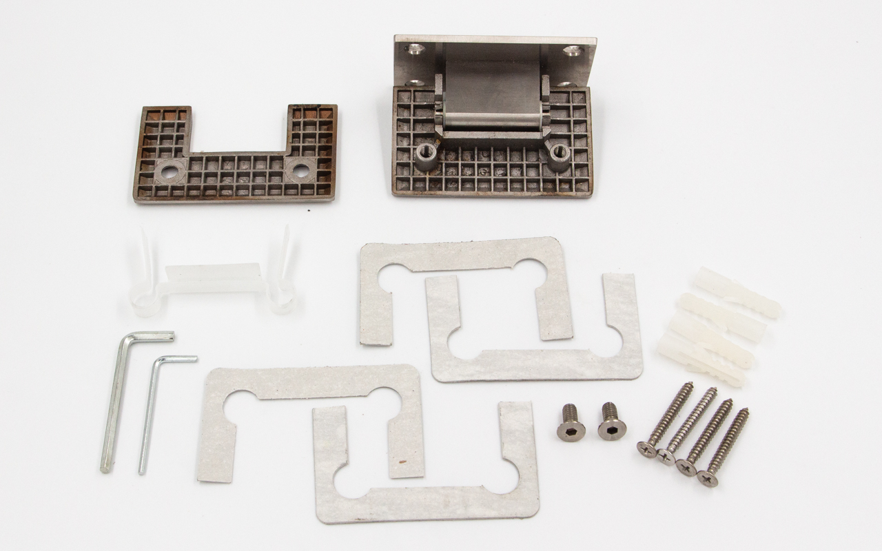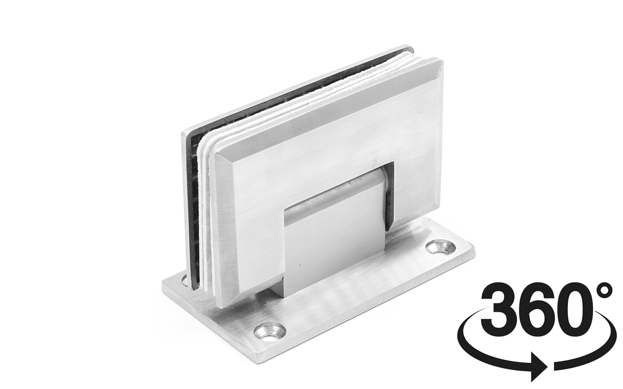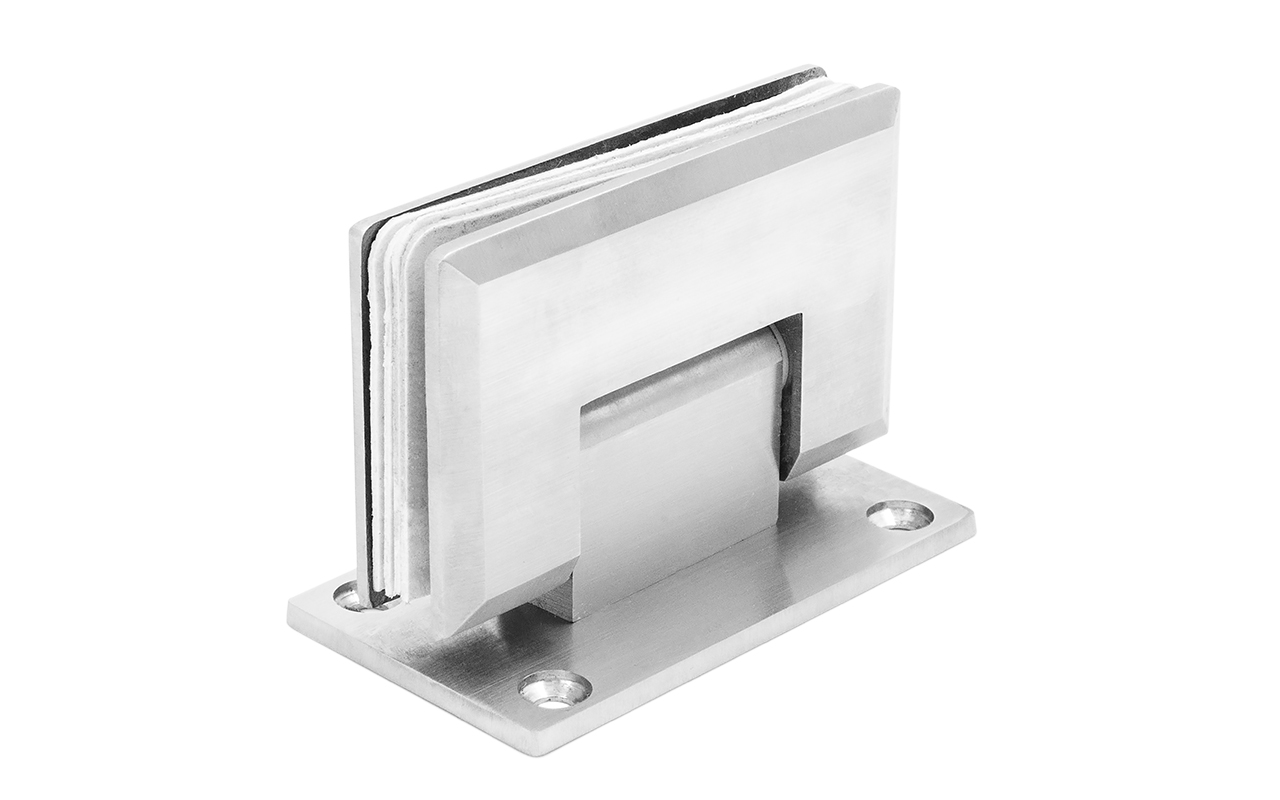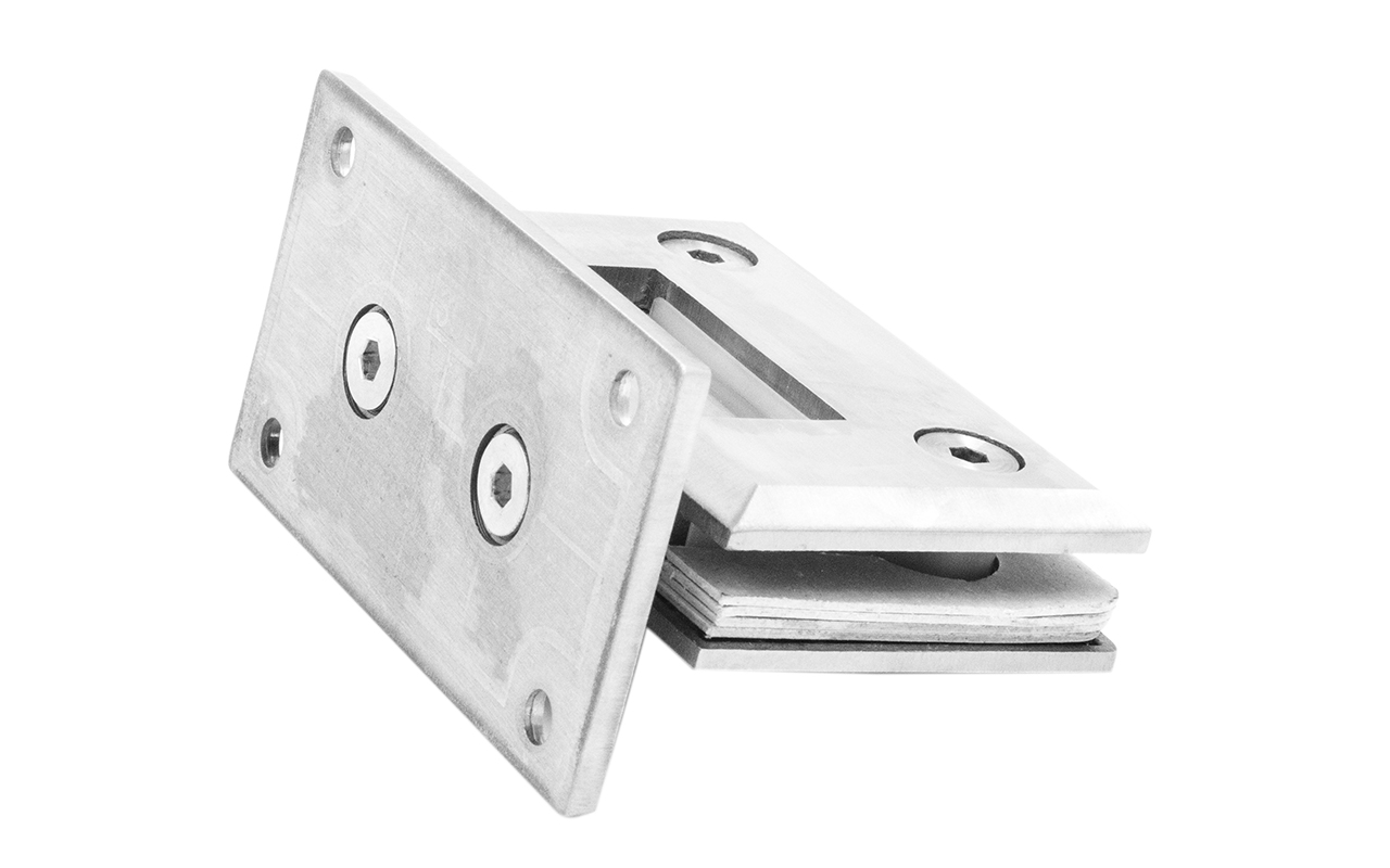 Петля из нержавеющей стали со шлифованной поверхностью из нержавеющей стали предназначена для стыковки между собой конструкционных элементов из стекла, толщина которых находится в диапазоне от 8 до 10 мм. Максимальный вес двери на 2 петли составляет 45 кг. В конструкции заложена система скрытого крепежа. Имеет функцию доводчика до закрытия от 25°. Максимальный угол разведения стыковочных элементов в плане составляет 90°.