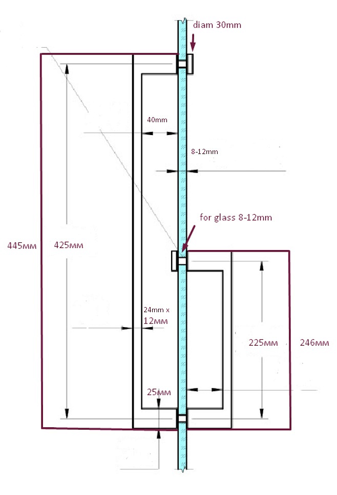 Ручка 225х425 круглая + квадратная труба, марка стали- AISI 304, черная