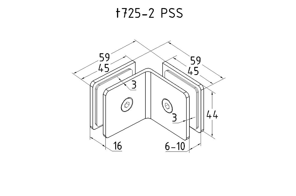 Коннектор для душевой кабины стекло-стекло 90° 45х45 мм полированный t725-2 PSS