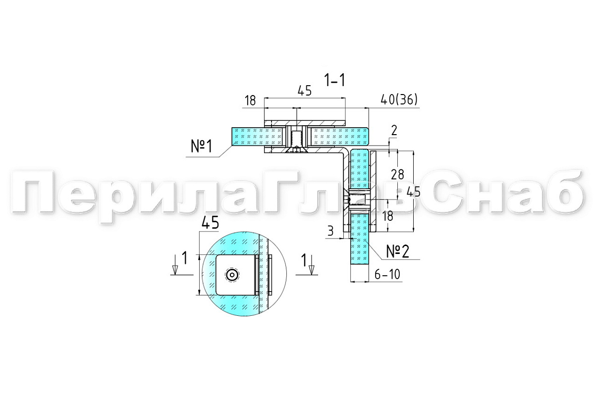 Коннектор для душевой кабины стекло-стекло 90° 45х45 мм, полированный. Марка стали - AISI 304
