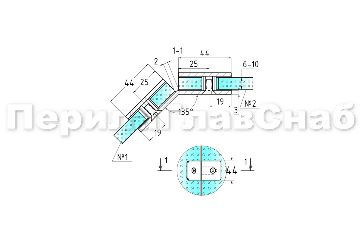 Коннектор для душевой кабины стекло-стекло 135° 45х45 мм полированный t726-2 PSS