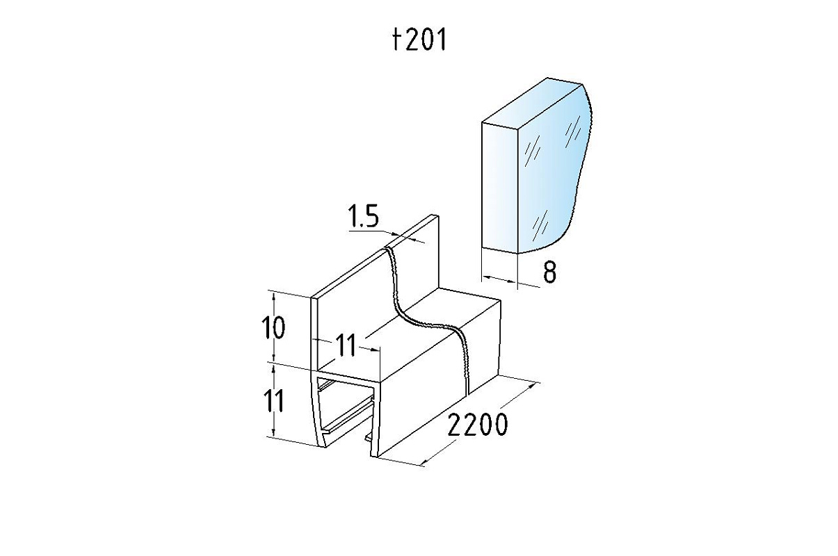 Длина 2200 мм. Монтируется по всему периметру стеклянного листа. Позволяет соединять стеклянные панели между собой.