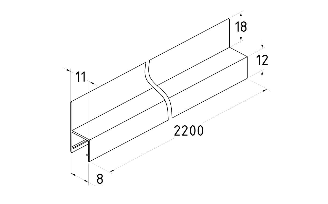Длина 2200 мм. Монтируется по всему периметру стеклянного листа. Позволяет соединять стеклянные панели между собой