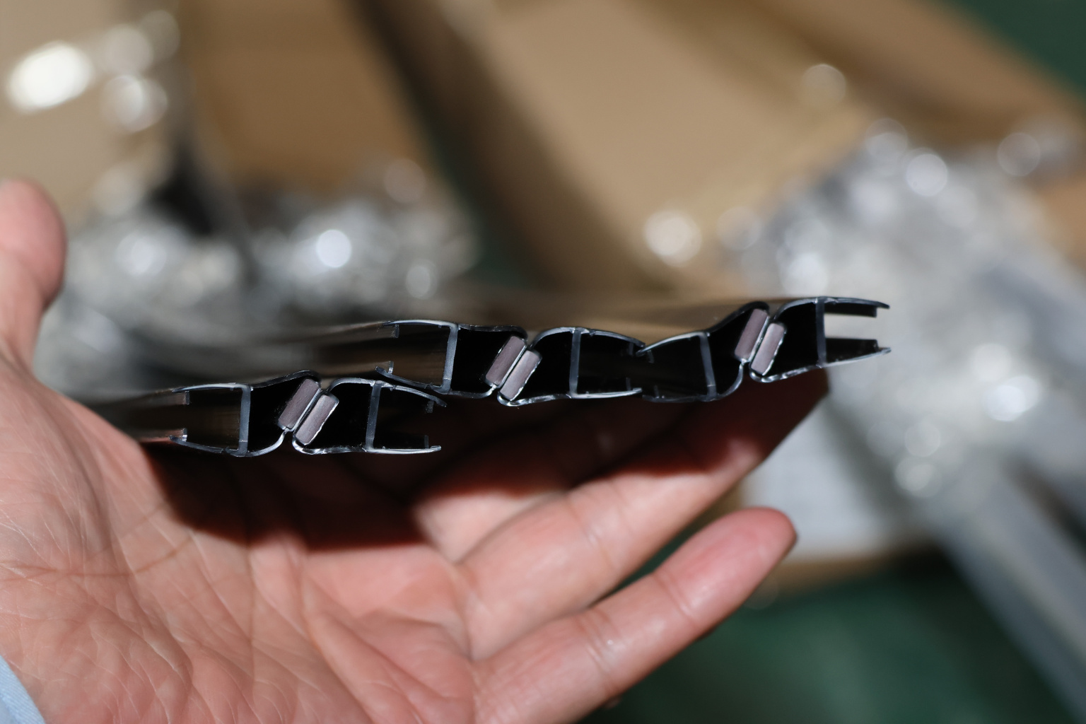 Монтируется по всему периметру стеклянного листа. Позволяет герметично соединять стеклянные панели между собой благодаря встроенному магниту. Толщина одного типоразмера составляет 1.5 мм, длина – 2200 мм.
