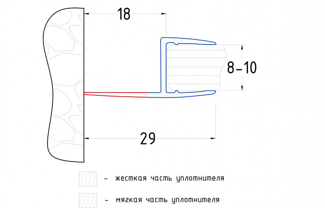 Уплотнитель для стекла 8мм, 90°, стекло-стекло 2,2 м.длина уса 25 мм t215y-8 купить в Екатеринбурге
