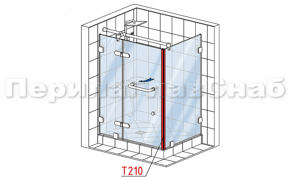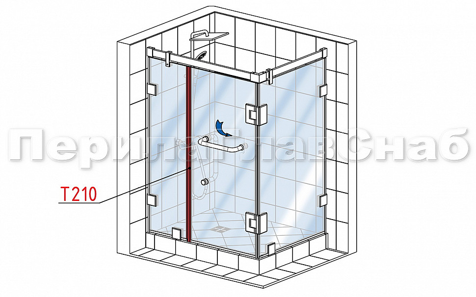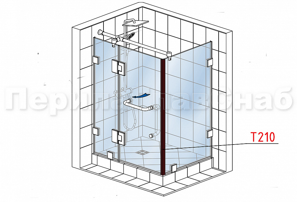 Комплект раздвижной системы для стеклянной душевой, нержавеющая сталь AISI 304, полированная t401 PSS купить в Екатеринбурге