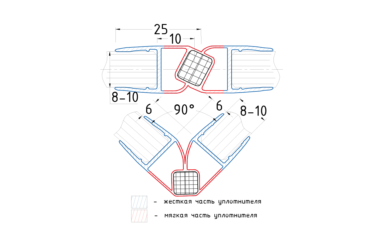 Уплотнитель для стекла 8мм, 90°, стекло-стекло 2,2 м.длина уса 25 мм t215y-8 купить в Екатеринбурге