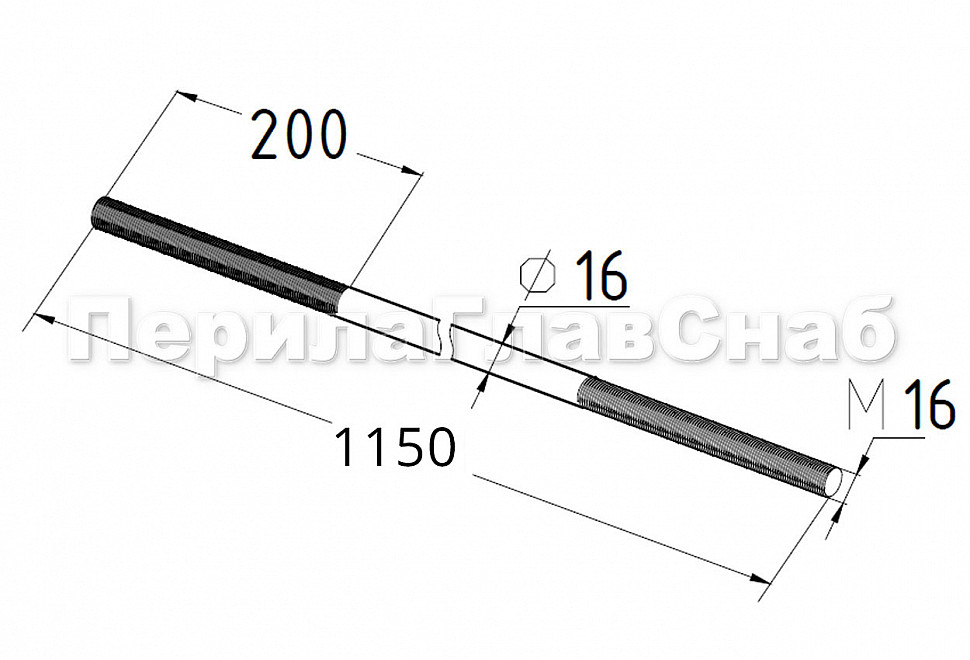 Вант(тяга) для козырька М16, длина 1150мм (AISI 304) k668-16-1150