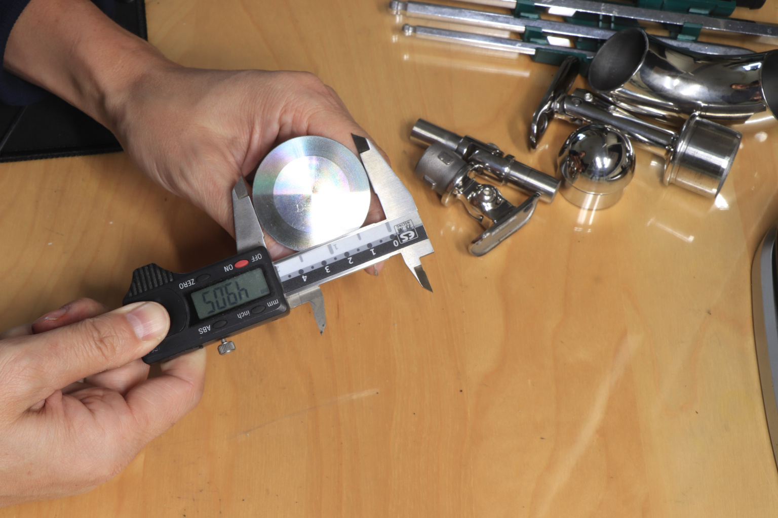 Рутель для вантового крепления козырьков, регулируемый, разборный, под стекло от 10 до 28 мм, полированный, диаметр внешнего кольца 52, шпилька М14 (AISI 304) k269-5