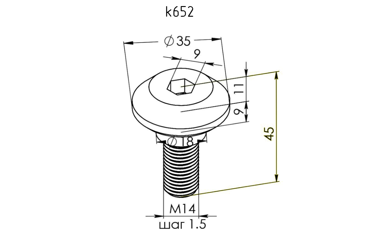 Крепежный винт с резьбой М14 для крепления спайдера к k659,k660, длина 50 мм, шаг резьбы 1,5 мм (AISI316) k652