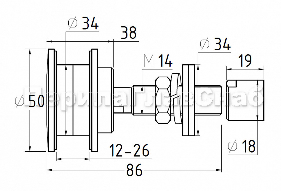 Рутель под стекло 10-26 мм, шпилька М14, регулируемый, разборный (AISI 304) k269-6 купить в Екатеринбурге