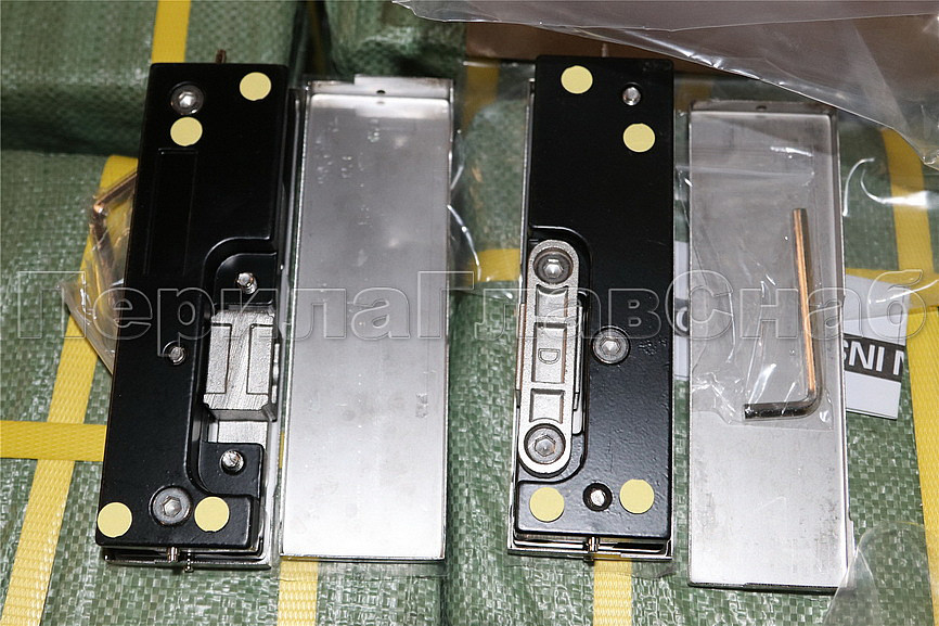 Сбоку нажимаем на крепления крышек и снимаем. Отвинчиваем винты, и фиксируем фитинг в подготовленный вырез в стекле. Далее закручиваем и фиксируем обратно крышки.
