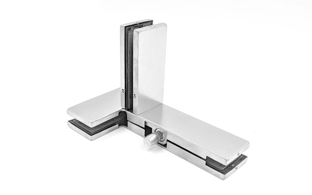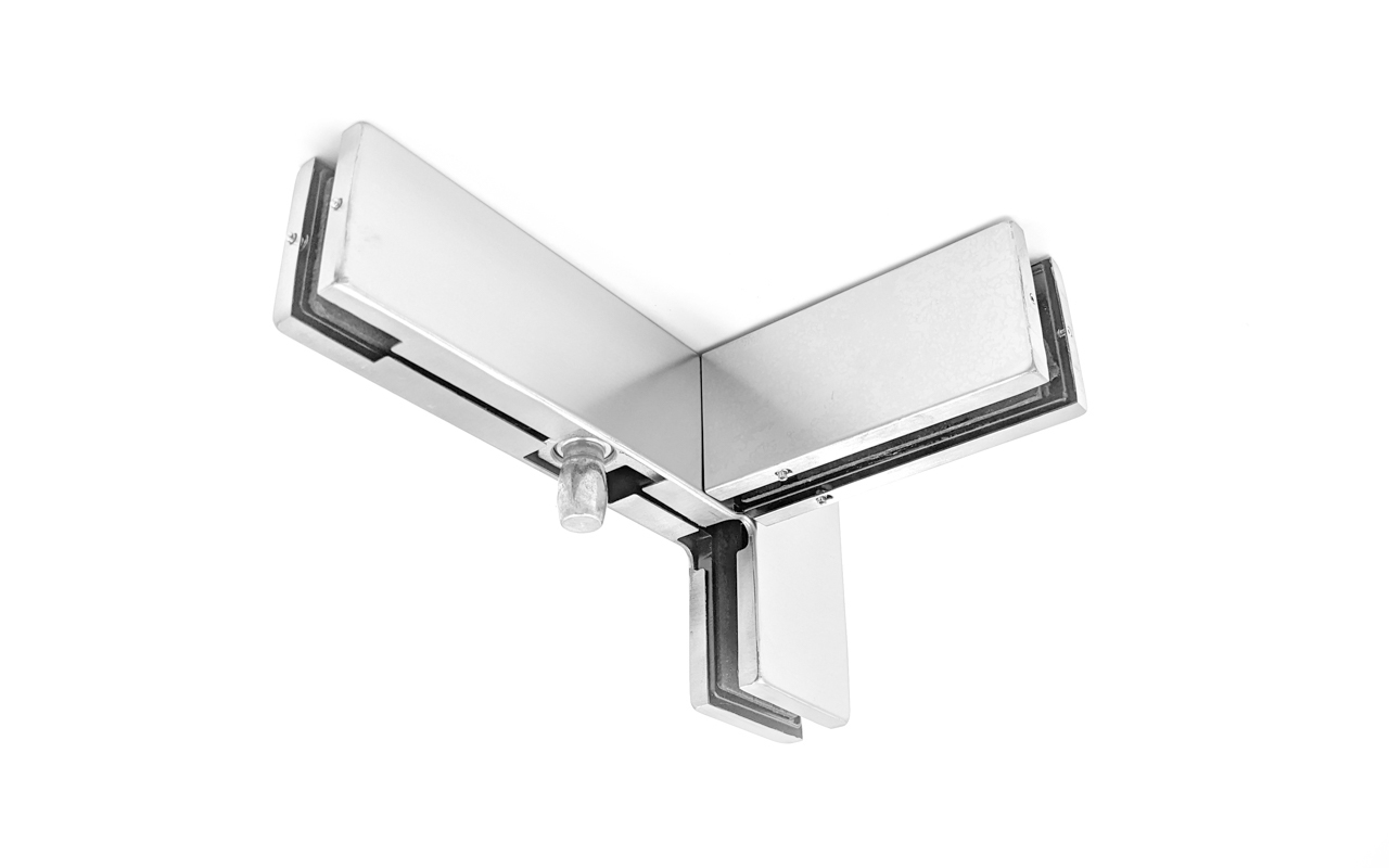 для монтажа стеклянных перегородок. Три стекла можно скрепить в одной точке. Применяется в офисных помещениях, торговых стеллажах, банковских пространствах и т.д. Имеет небольшой вес. Фурнитура защищается стеклянные поверхности от изломов и растрескивания.