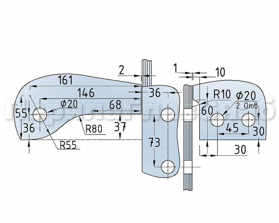 Фитинг угловой с осью и ребром жесткости, правый, шлифованный