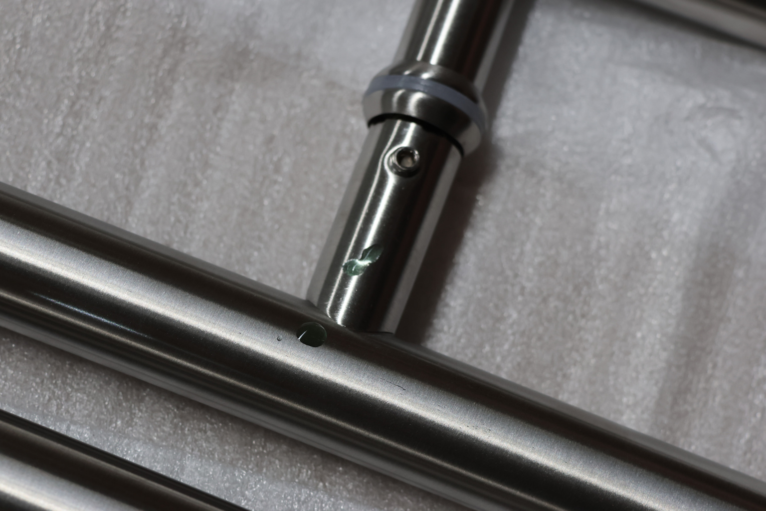 у основания ручки откручиваем с помощью шестигранника винты, делим ручку на две части, в заранее заготовленные отверстия вырезы в стекле 10-12 мм фиксируем первую часть ручки в отверстиях и с обратной стороны ответную часть затягиваем с помощью шестигранника