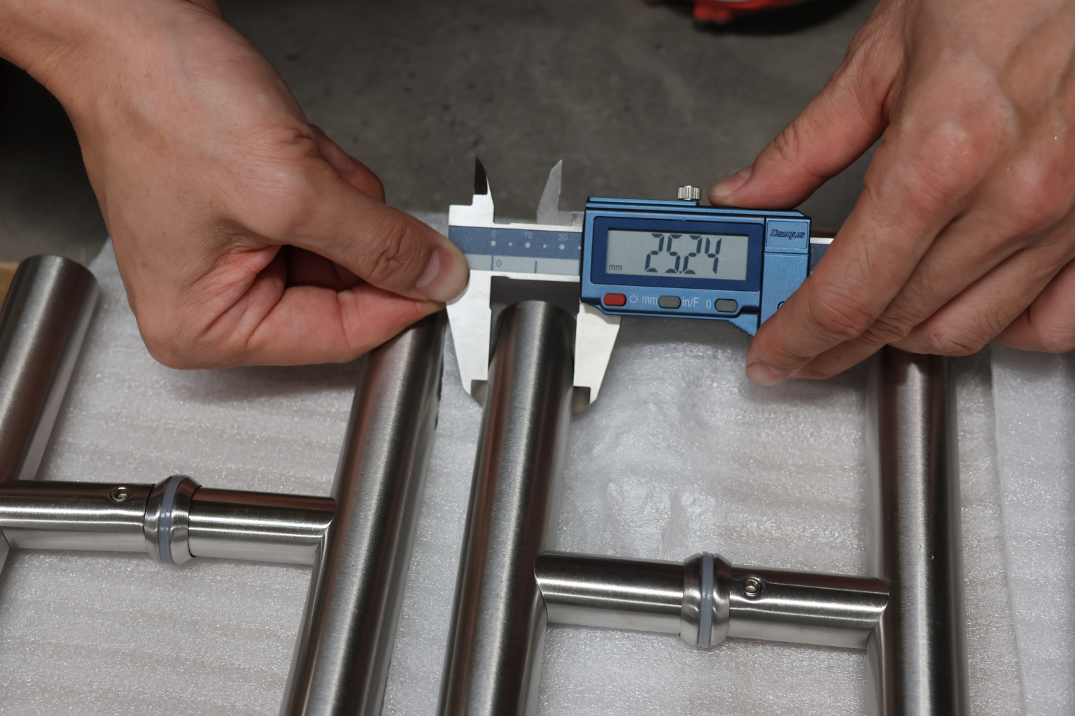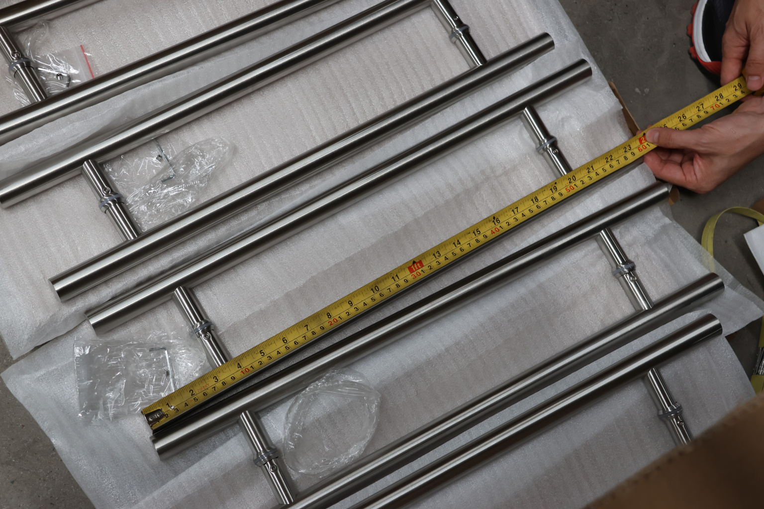 Ручка для стеклянной двери рейлинг двухсторонняя для стекла 8-12 мм, 25х425х600 мм, шлифованная, марка стали- AISI 304