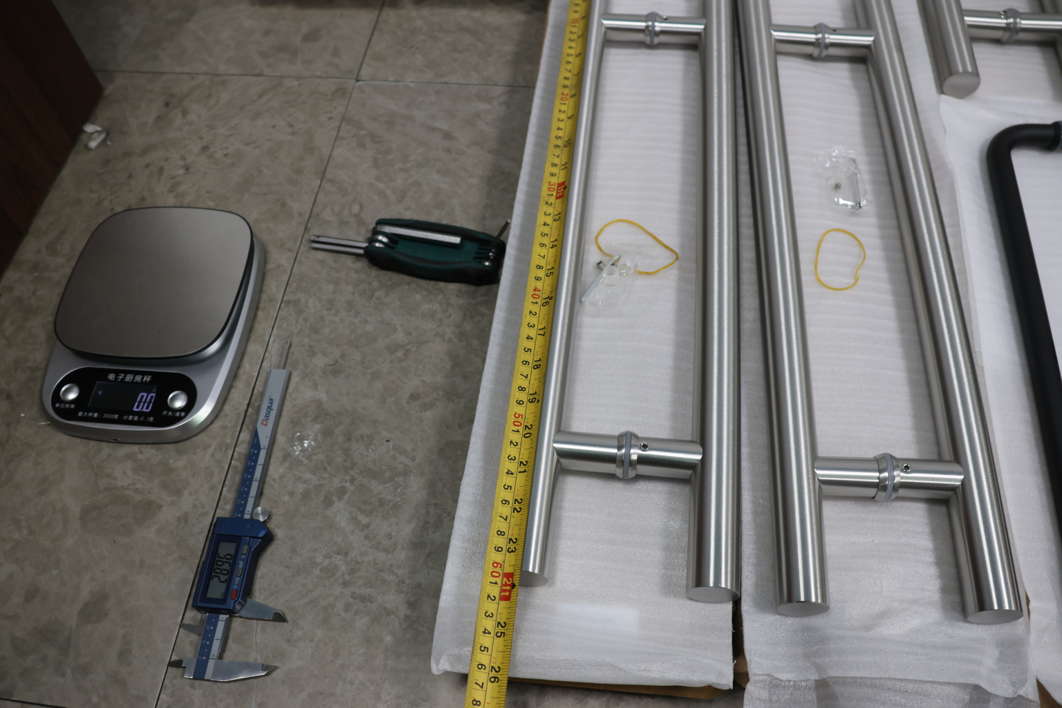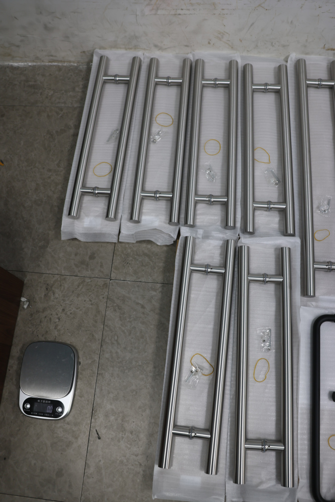 у основания ручки откручиваем с помощью шестигранника винты, делим ручку на две части, в заранее заготовленные отверстия вырезы в стекле 10-12 мм фиксируем первую часть ручки в отверстиях и с обратной стороны ответную часть затягиваем с помощью шестигранника