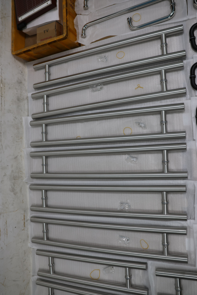 Ручка для стеклянной двери рейлинг двухсторонняя для стекла 8-12 мм, 32х425х600 мм, шлифованная, марка стали- AISI 304