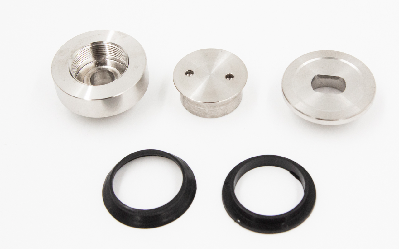 Комплект торцевого крепления несущего стекла, гайка-шайба Ø50х10х18 мм с внутренней резьбой М16, порошковая покраска RAL 9005 мат, AISI 304 Фk277-6-П