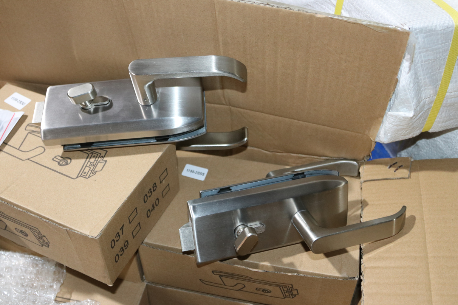 Замок для стеклянной двери с нажимной ручкой и притвором, евроцилиндр односторонний ключ/защелка, с ответной частью на стену, шлифованный t155-2 SSS