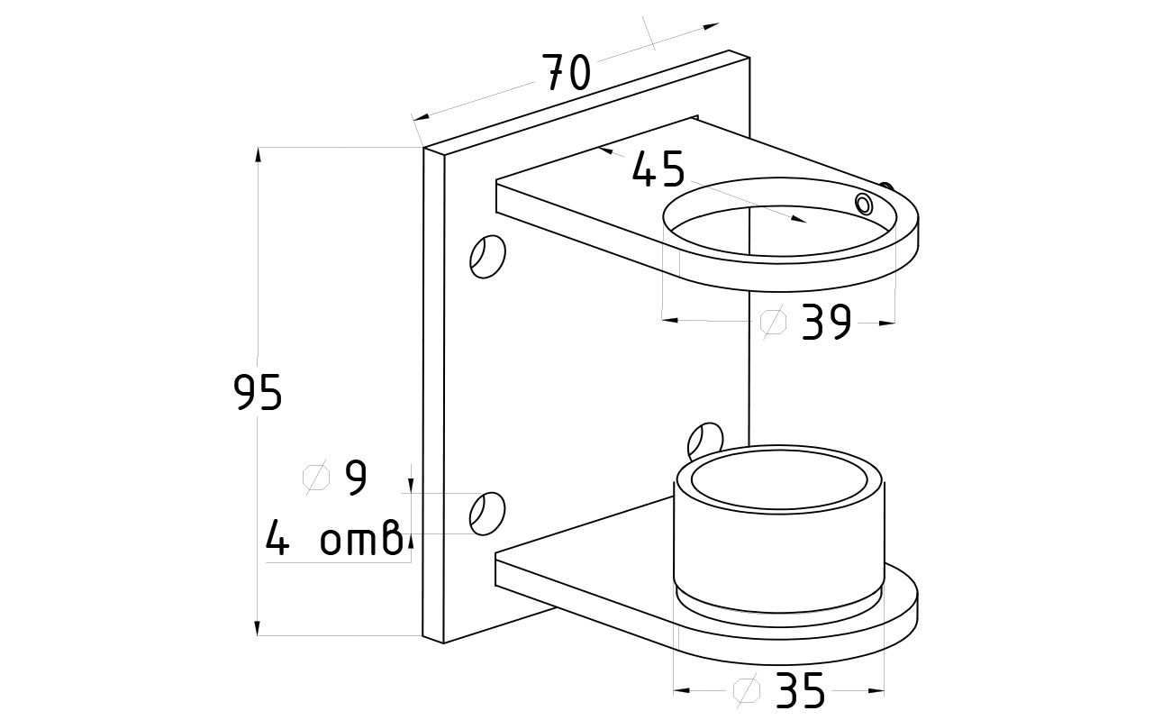 Фитинг предназначен для крепления стойки диаметром Ø38.1 мм с торца лестничного марша. Если у вас лестничный марш меньше 900 мм и вы хотите комфортно разойтись с другим человеком по лестнице, то этот крепеж идеально подходит для монтажа перил. Наконечником в этом случае у вас может быть k204 или k006. Также в нашем ассортименте есть аналог данного фитинга из 201 марки стали для работ внутри помещений k339-3.