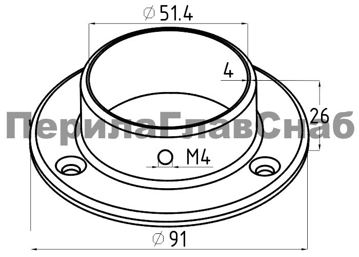 К этому фланцу не нужны никакие крышки и накладки, так как деталь вполнена методом литья и имеет очень презентабельный вид. Универсальность посадочного отверстия позволяет применять этот фитинг в сочетании с деревянным или пластиковым поручнем.
