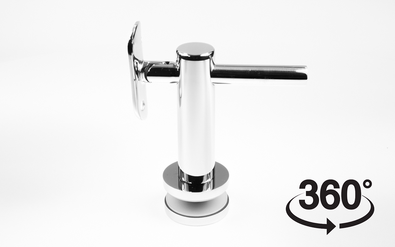 k241-5 выносной держатель поручня на стекло 8-20 мм, регулируемый, с ложементом, полированный, (AISI 304) под отверстие в стекле Ø17-18 мм