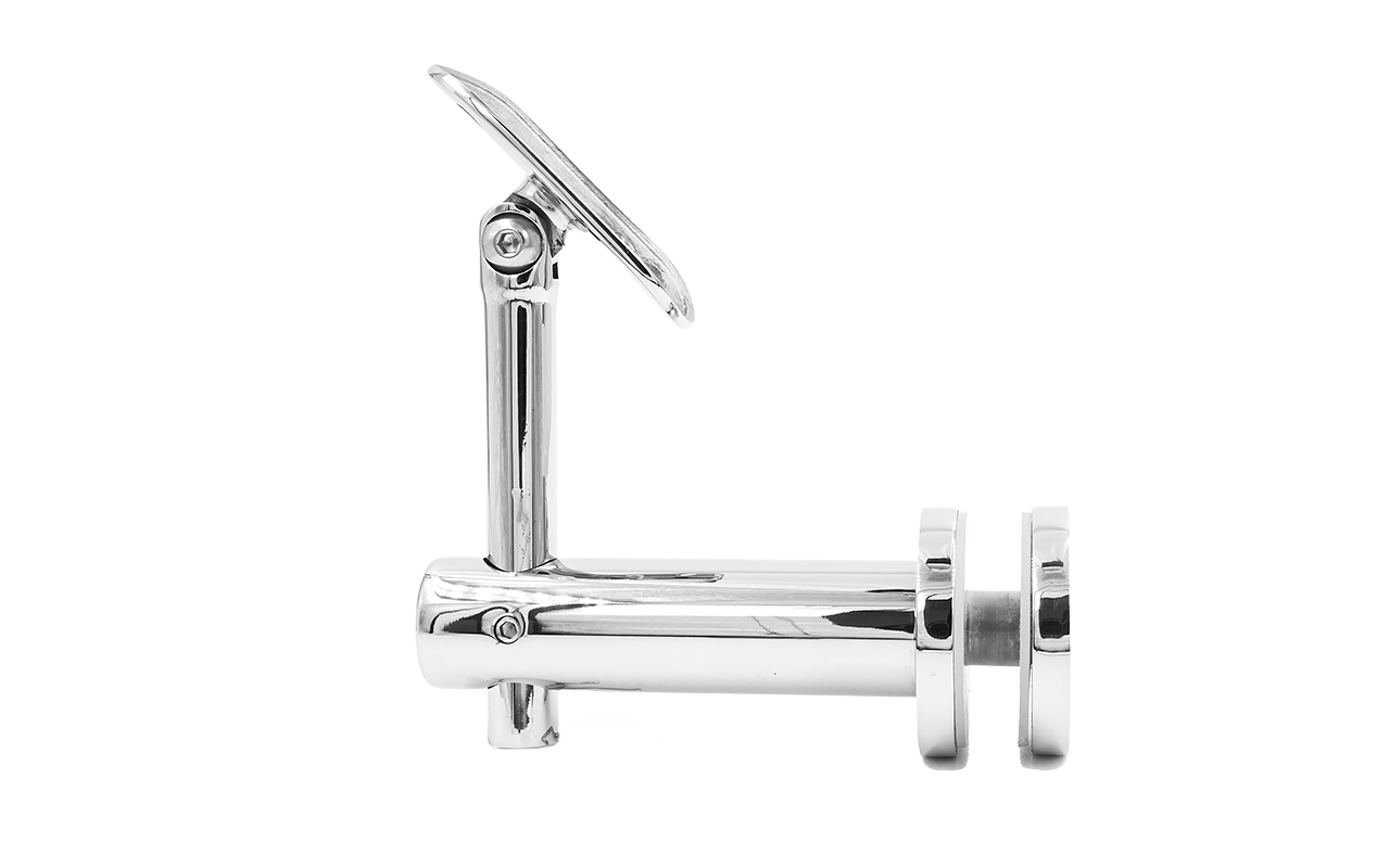 Выносной держатель поручня на стекло 8-20 мм, регулируемый, с ложементом, полированный, (AISI 304) k241-5