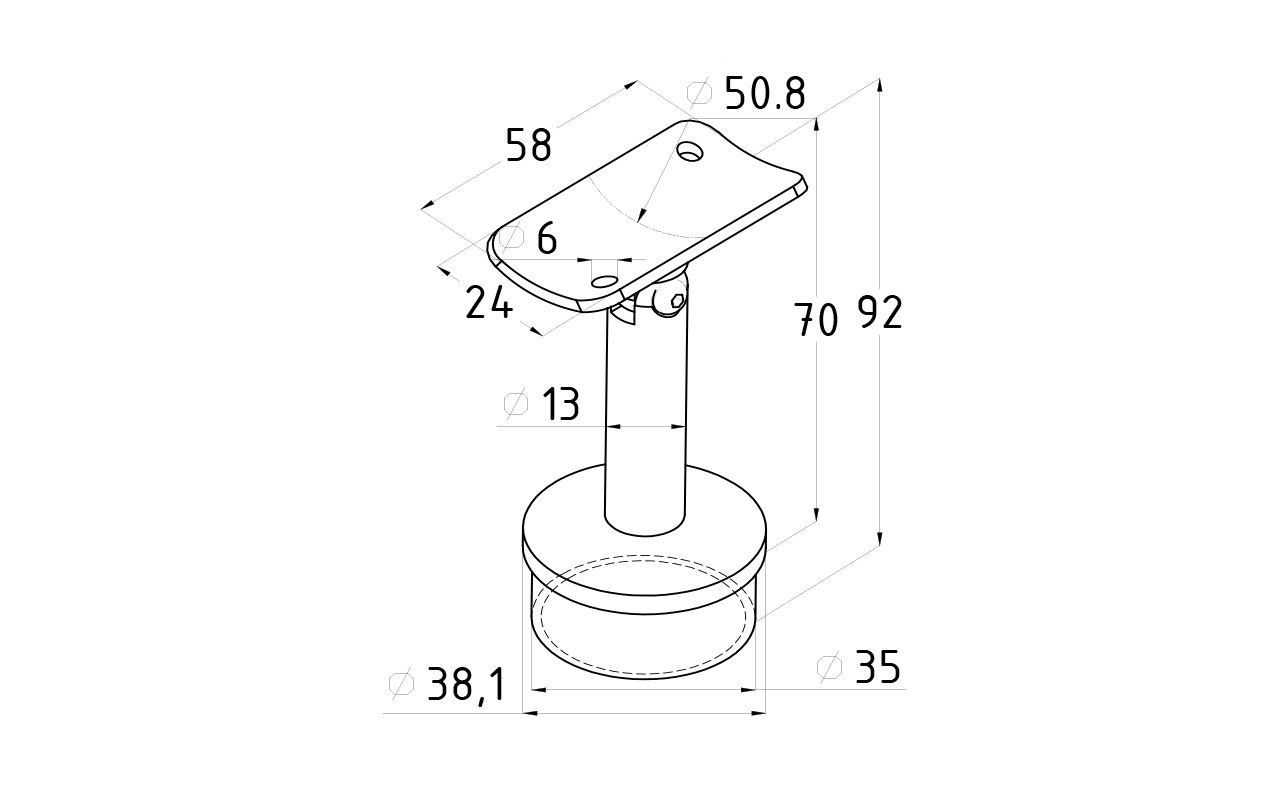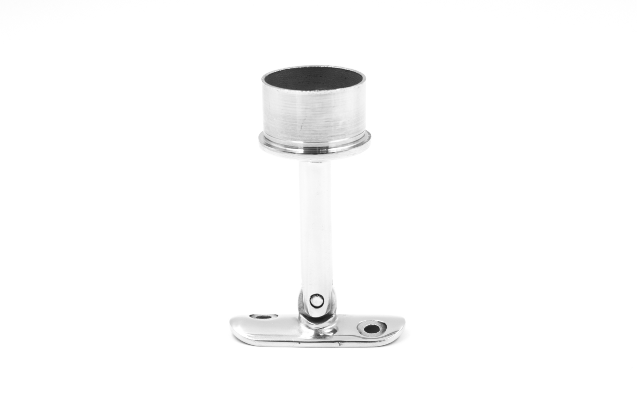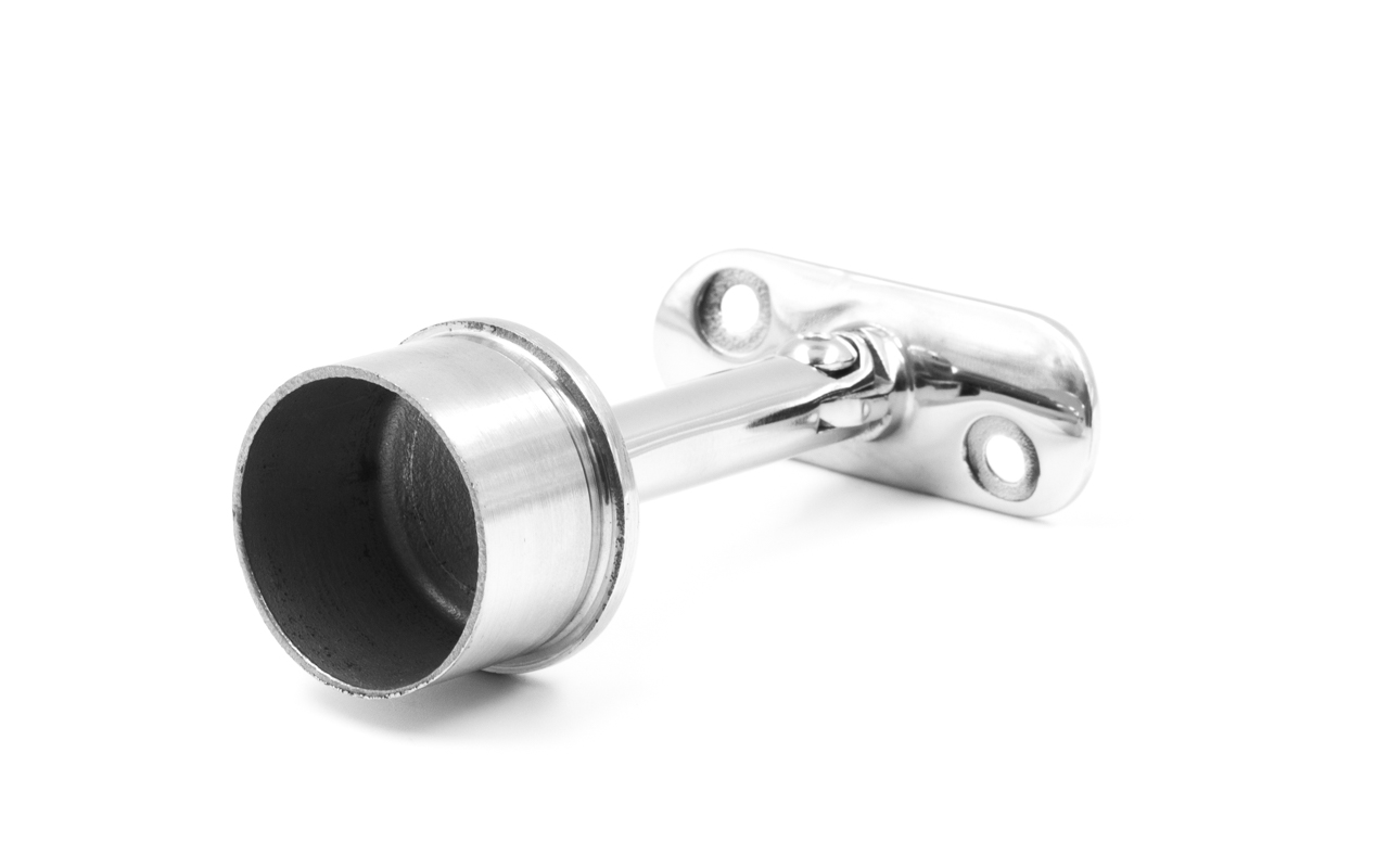 Предназначен для стойки диаметром Ø38.1 мм (k819, k849) под поручень Ø50.8 мм. Деталь с регулируемым ложементом и отверстиями под саморезы. Можно крепить как на сварку, так и на специальный клей (Ф-1105, Ф-1106).