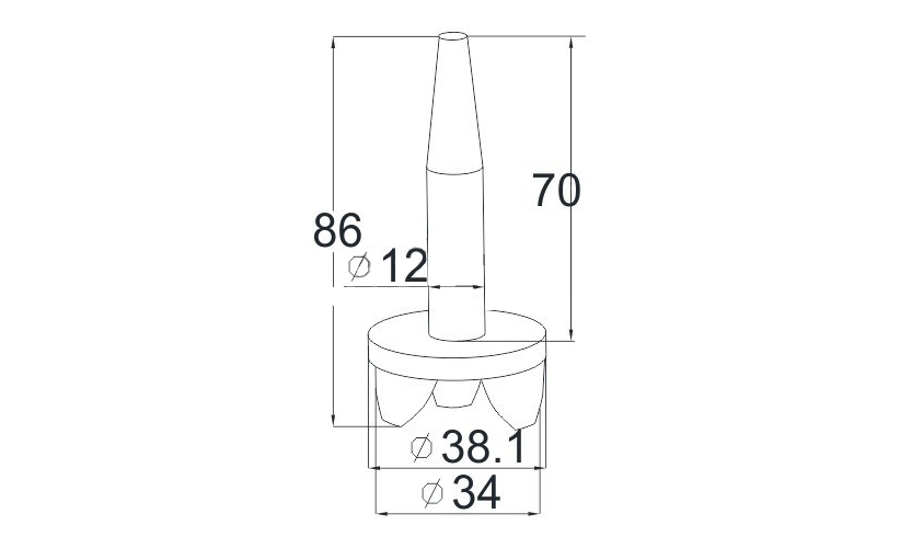 Наконечник палец (солдатик) на стойку Ø38.1 мм, без ложемента, литой, полированный, повышенной коррозионной стойкости, под сварку, облегченный, нержавеющий AISI 316, k034-3