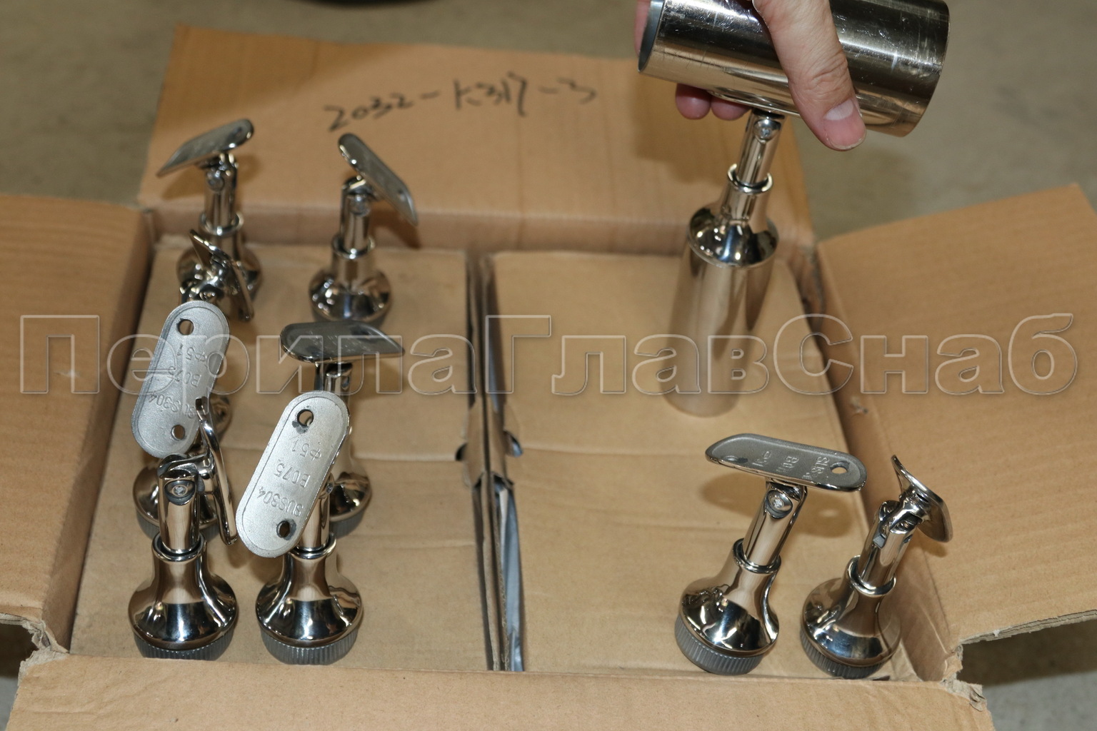 Наконечник регулируемый по высоте на стойку Ø38.1х1.5 мм, с регулируемым ложементом под поручень Ø50.8 мм. Деталь литая, полированная, нержавеющая. Марка детали - AISI 304