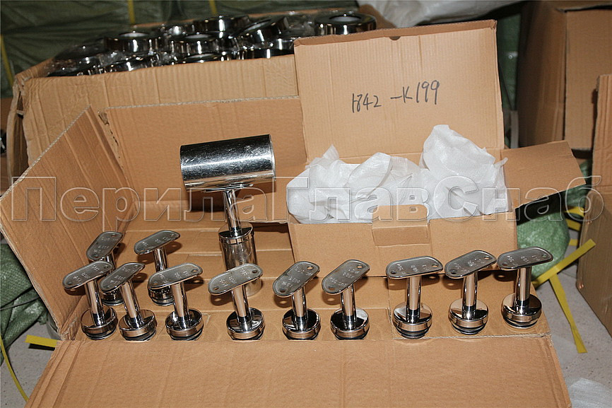Наконечник палец с алюминиевой системой фиксации на стойке Ø38.1х1.5 мм, регулируемым ложементом под поручень Ø50.8 мм, полированный, литой, нержавеющий (AISI 304) k204 купить в Екатеринбурге