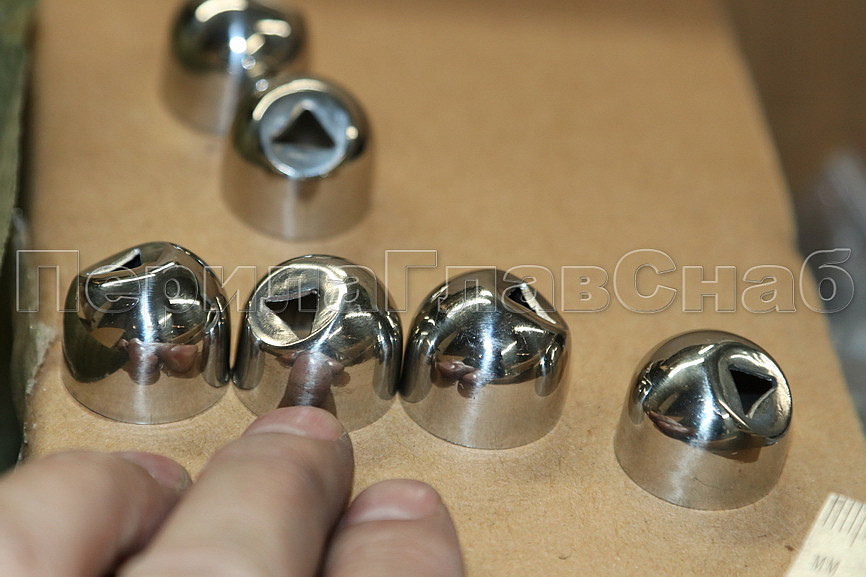 Наконечник палец (солдатик) на стойку из профильной трубы 40х40х1.5 мм, литой, усеченный, облегченный, полированный, нержавеющий AISI 304 k285-2 купить в Екатеринбурге
