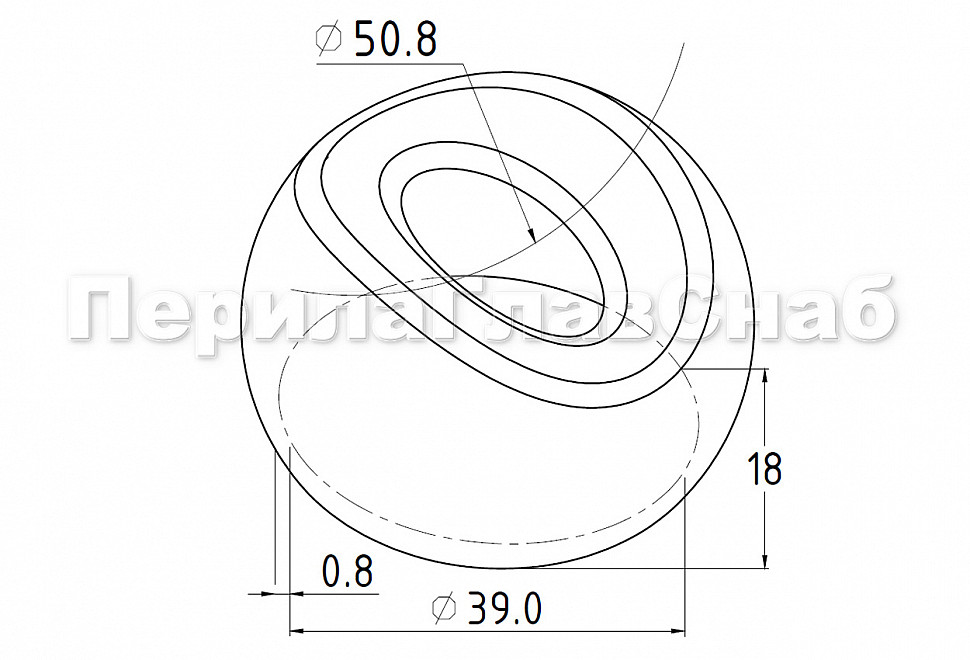 Наконечник штампованный (СПС) прямой 90° на трубу Ø38.1 мм, для поручня Ø50.8 мм, полированный, нержавеющий, AISI 304, 600Grit, k017-3