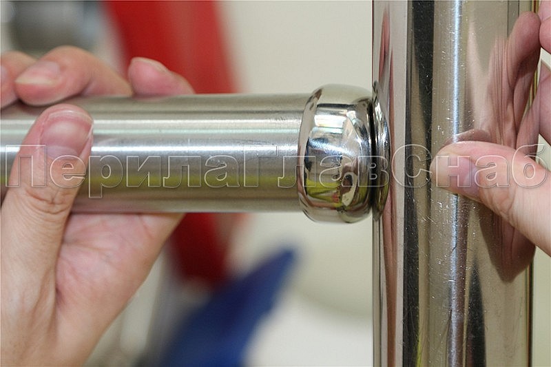 Самый распространенный тип наконечников для соединения круглых стоек и круглых поручней на прямых маршах лестниц или прямых ограждений.