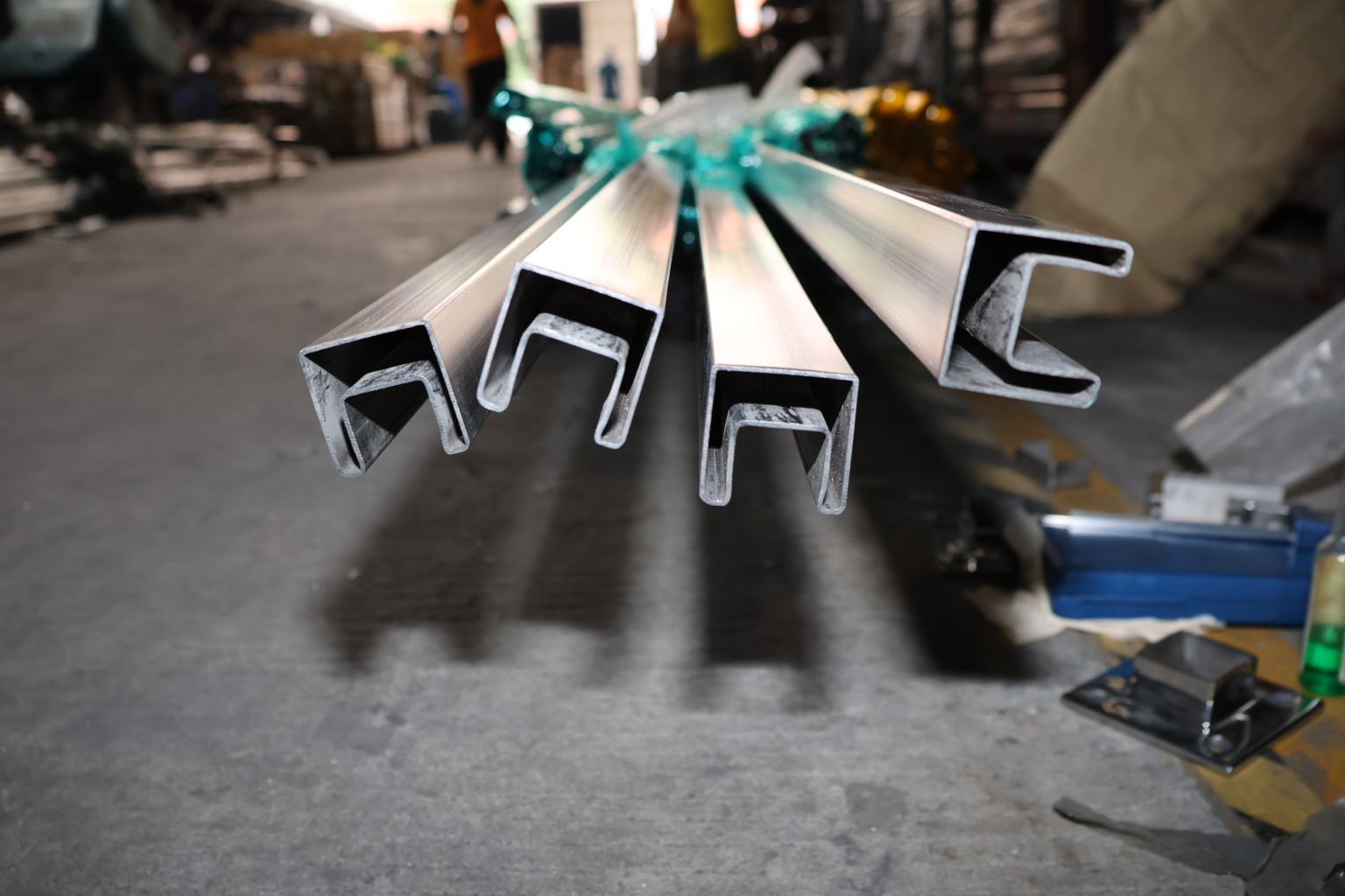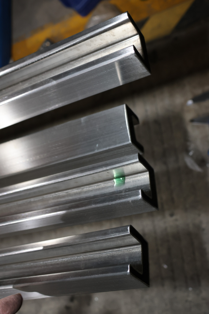 Труба 40х40 мм с пазом 24 х 24 под стекло, AISI 304 шлифованная k856-2