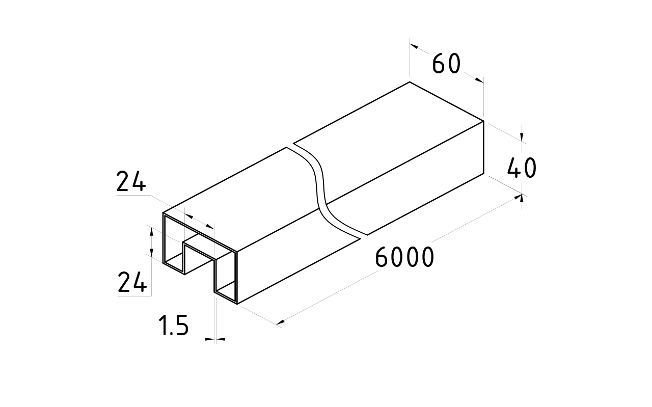 Труба 40х60 с пазом 24х24 мм под стекло, шлифованная, 6000 мм