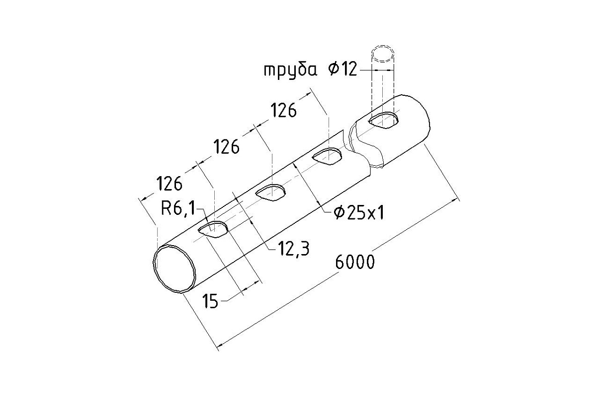 Труба AISI 201 25х1х6000, с перфорацией под Ø16, 30°, GRIT 600 831-5