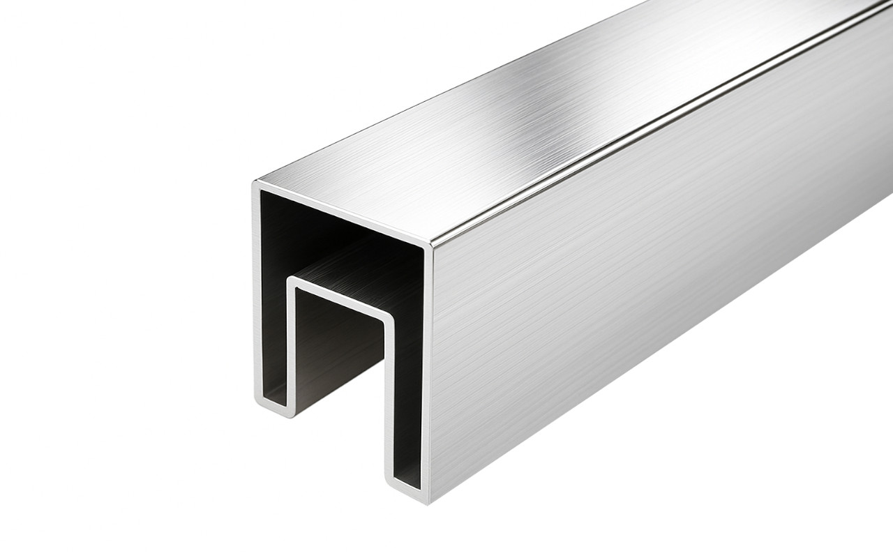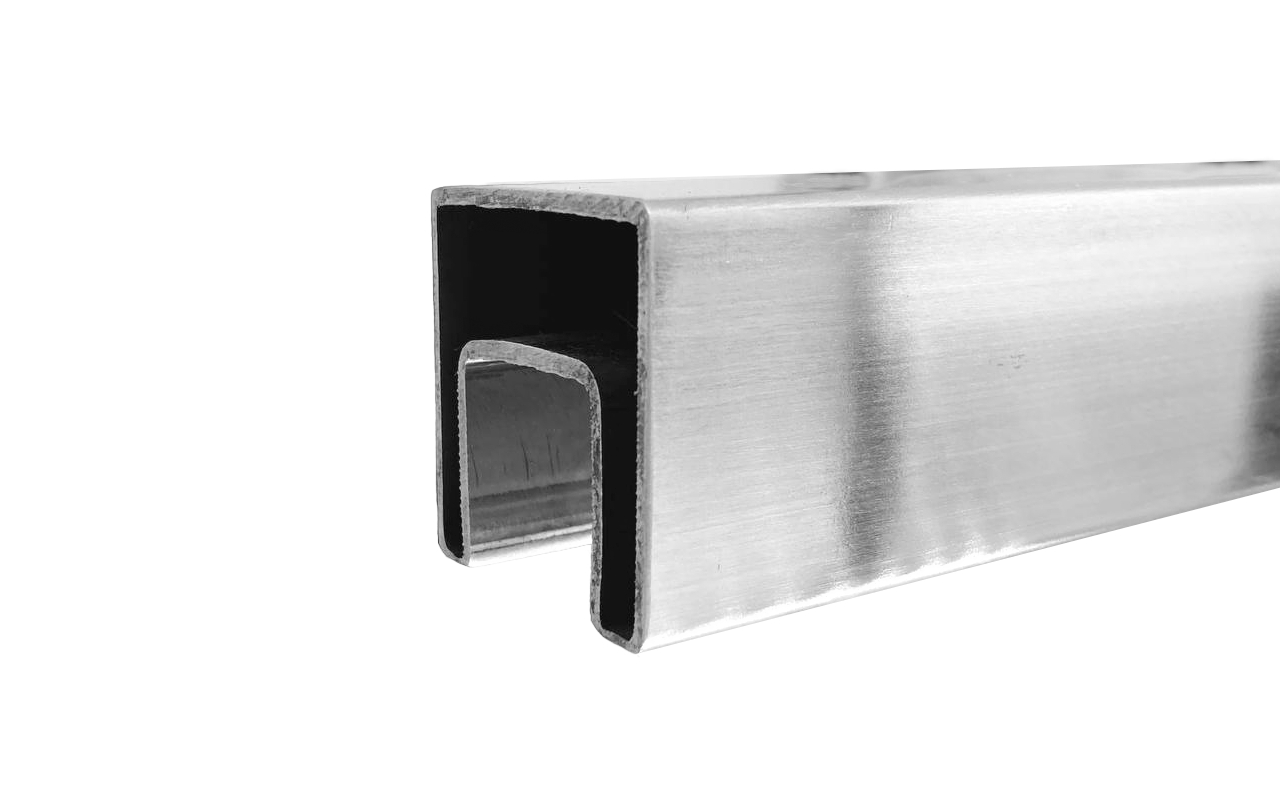 Труба 40х40 мм с пазом 24 х 24 под стекло, шлифованная, AISI201, k856-4