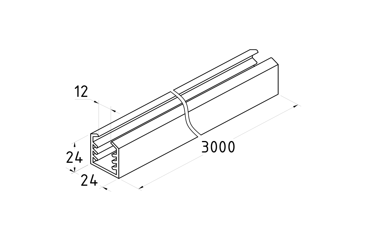 Труба, 40х60, с пазом 24х24 мм под стекло, шлифованная (AISI 201) k824-4
