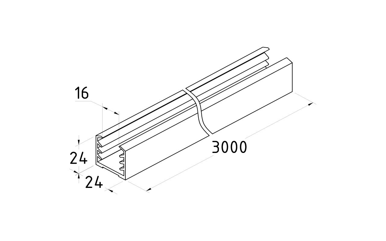 Уплотнитель в поручень с пазом 24х24 для стекла 8+8 мм, EPDM Фk303